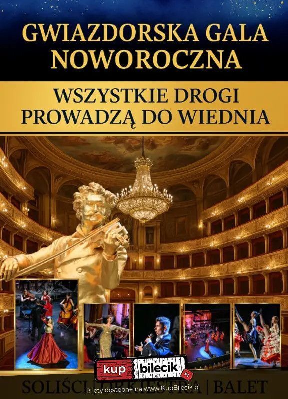 W ten jeden, wyjątkowy wieczór zapraszamy Państwa na niepowtarzalne wydarzenie, które przeniesie słuchaczy w sam środek muzycznego raju - do złotego Wiednia, stolicy elegancji, walca i operetki. Gwiazdorska Gala Noworoczna to widowisko łączące tradycję z brawurą wykonania i niepowtarzalną atmosferą artystycznego święta. Na scenie zabrzmią najpiękniejsze dzieła Straussów, Lehára i Kálmána - pulsujące rytmem walca, czarem melodii i wigorem noworocznej radości.